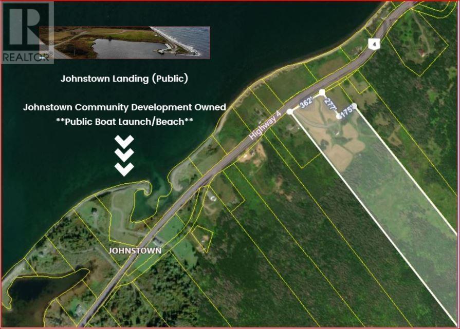 From the Number 4 Highway (East Bay to Big Pond) until you arrive in Johnstown. "House on the Hill" Opposite Water For exact location, copy/paste into browser search bar 45.802145, -60.727440